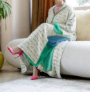 The cut remains controlled and elegant, allowing the material to hold its form without stiffness. Along the front, a clean Moroccan finish introduces a vertical line that brings clarity and balance to the silhouette.